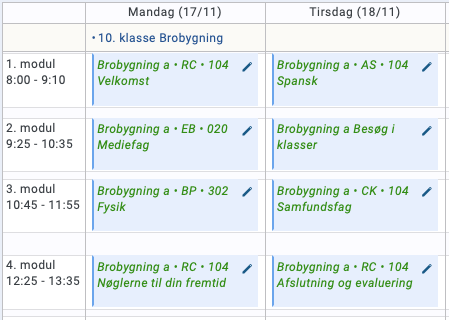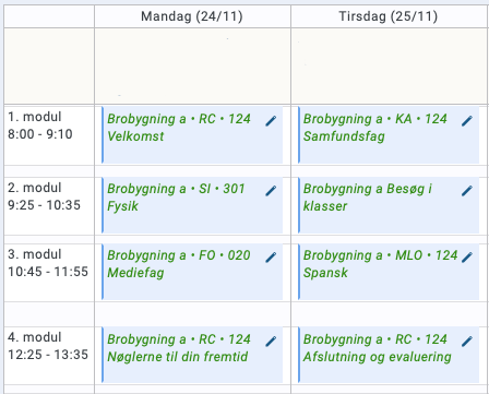 Du vil modtage undervisning sammen med de andre elever i brobygning og få en mulighed for at tale med nogle af skolens elever.